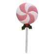 This oversized handmade wool felt lollipop is a playful holiday accent that adds a sweet touch to your seasonal décor. Featuring a pink and white swirl design and finished with a festive holly detail, it brings the charm of a candy shop to your holiday displays. Perfect for propping in vases, placing in arrangements, or styling in whimsical Christmas themes.