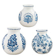 These block print flower vases showcase a timeless hand-stamped floral design in classic blue and white, bringing artisanal charm to any space. Crafted from high-quality stoneware, each vase features a rounded silhouette perfect for displaying fresh or dried flowers.