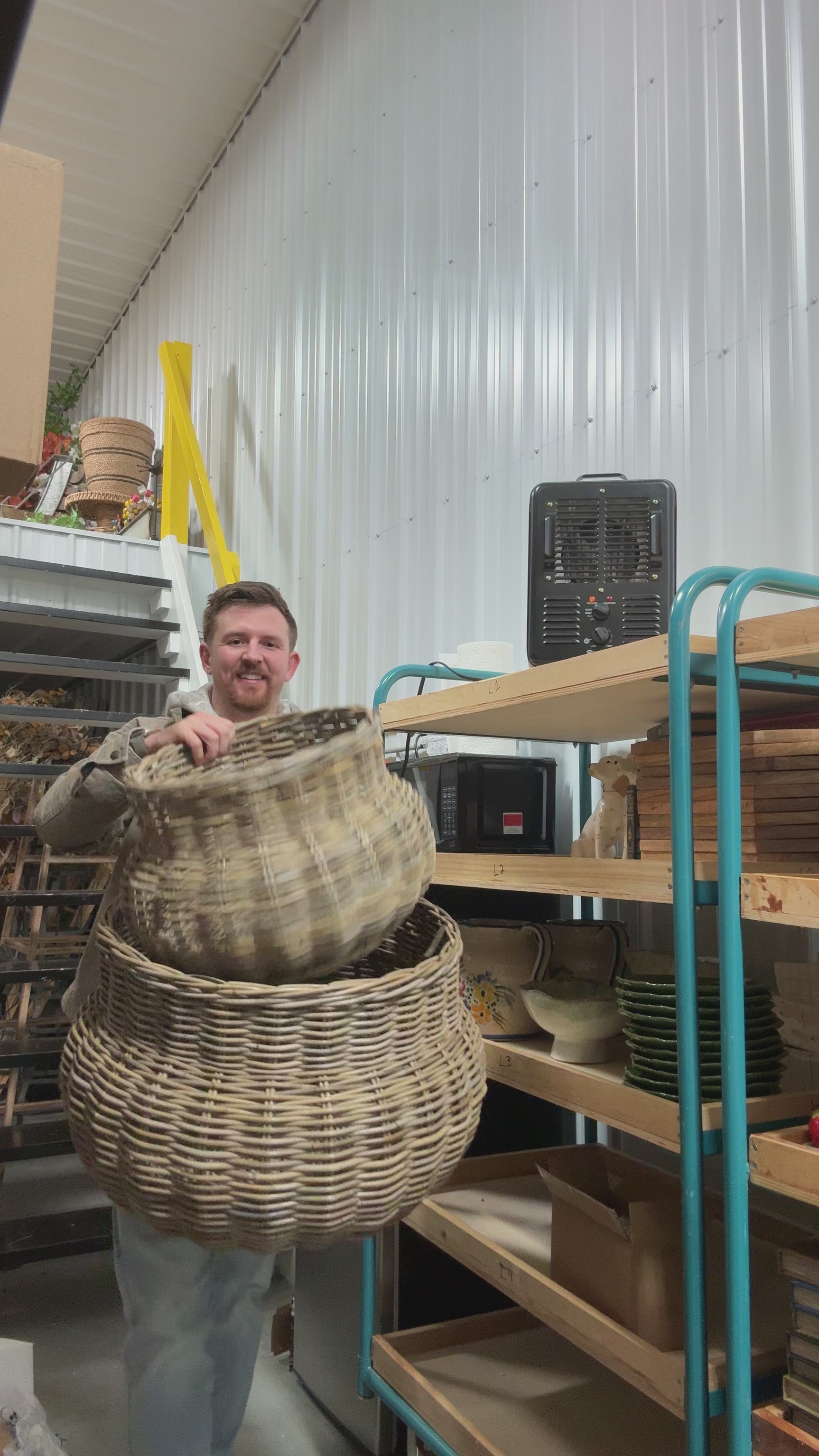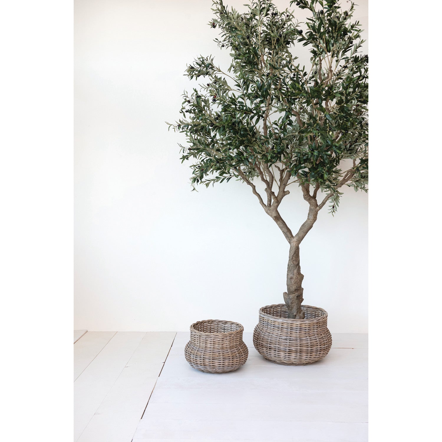 Designed to hold standard nursery pots, two sizes (sold individually) are perfect for anchoring larger plants like fiddle leaf figs, olive trees, or statement houseplants. The organic rattan finish layers beautifully with neutral décor and collected interiors.