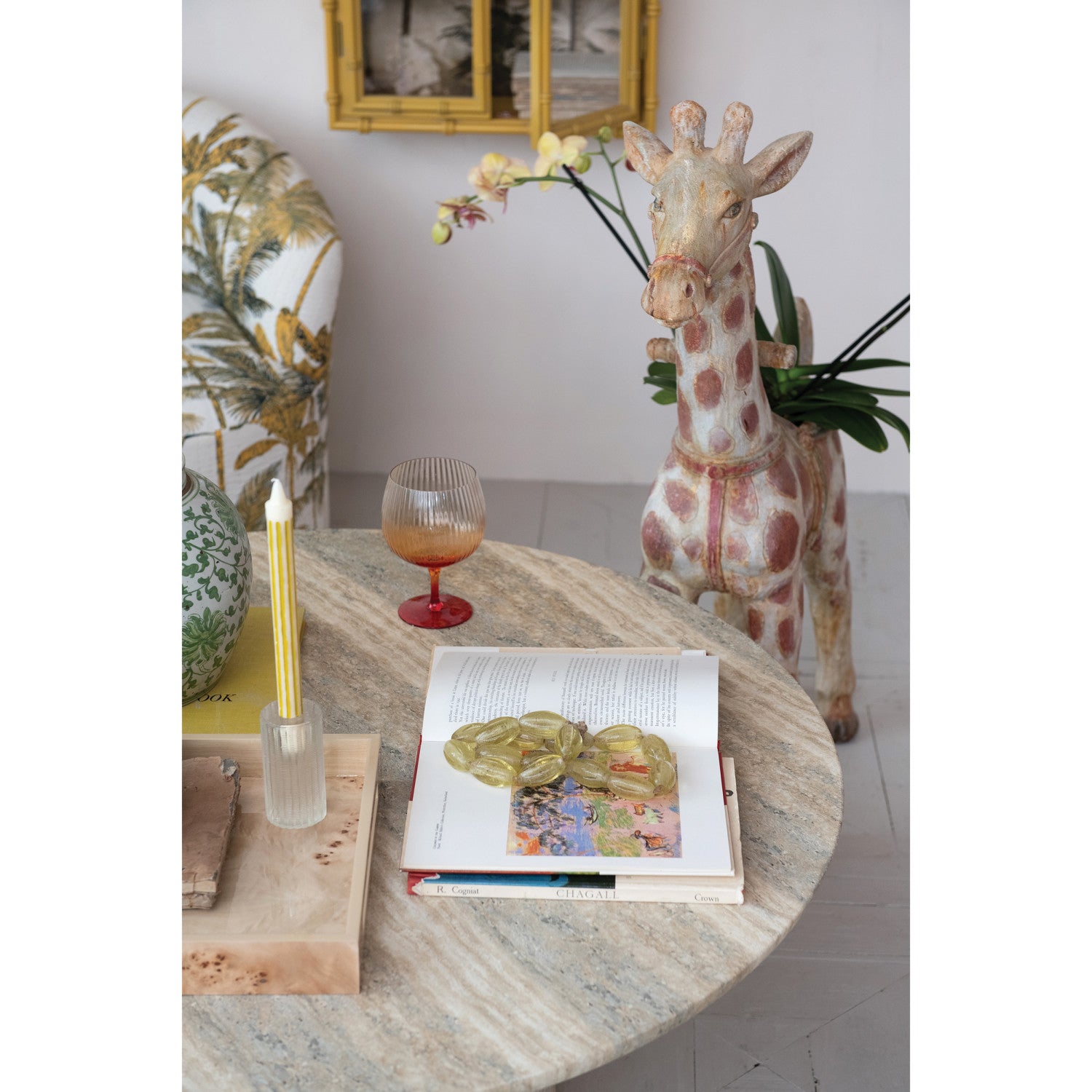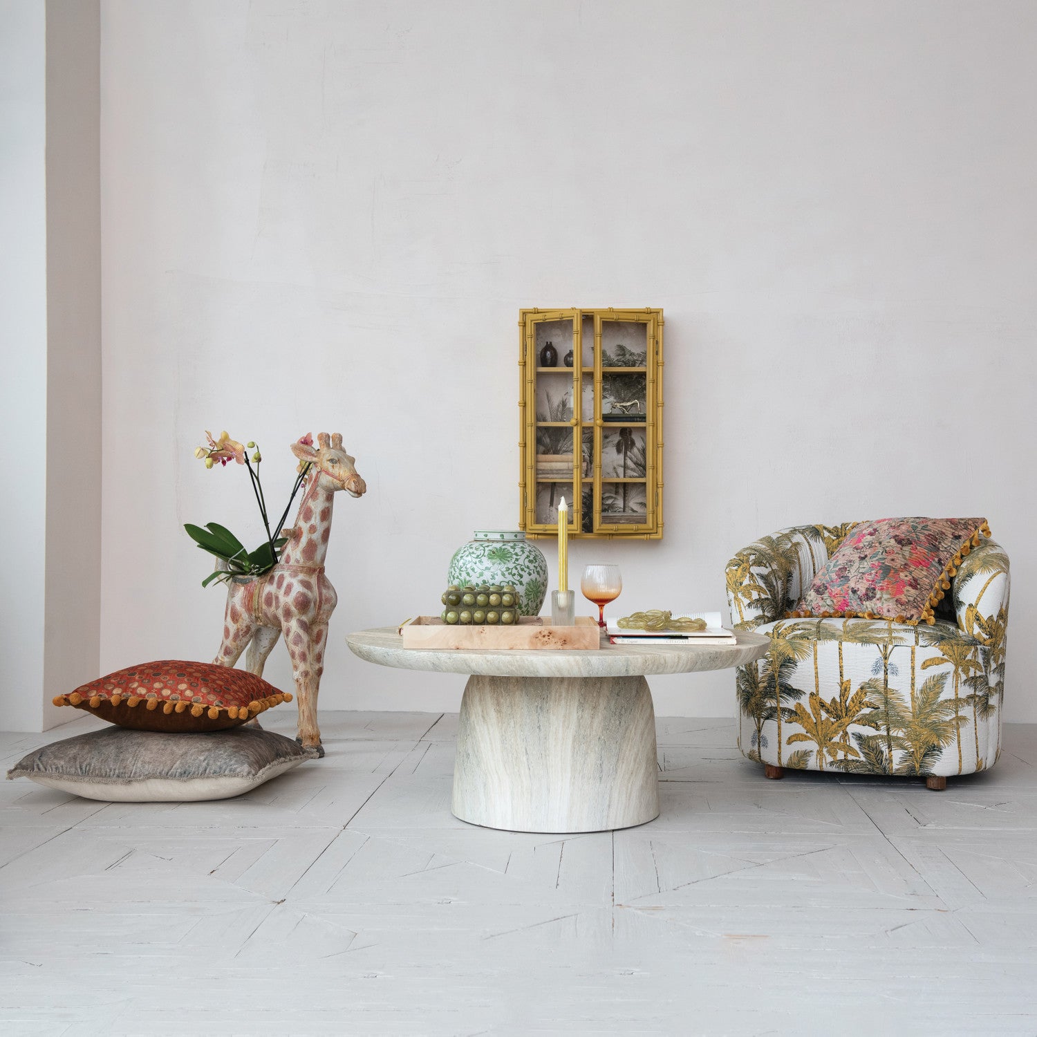 A playful nod to antique fairground charm, this giraffe-shaped planter brings character and height to your space. Crafted from magnesia with a distressed, hand-painted finish, it evokes the look of a well-loved carousel figure while doubling as a decorative container. Perfect for showcasing greenery or standing as a whimsical statement piece in a room or entryway.