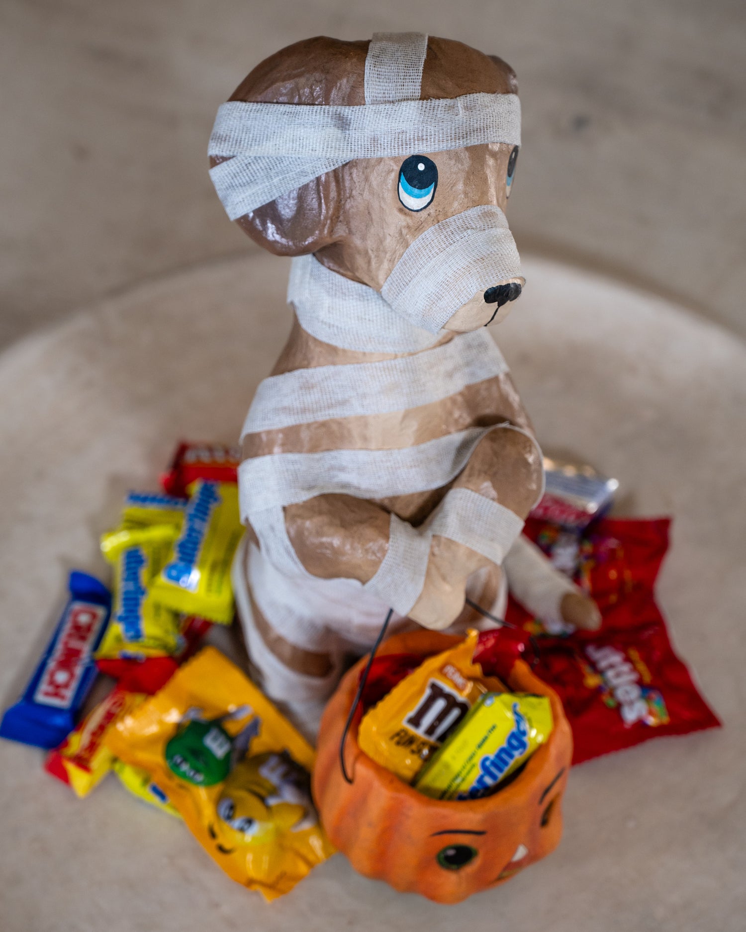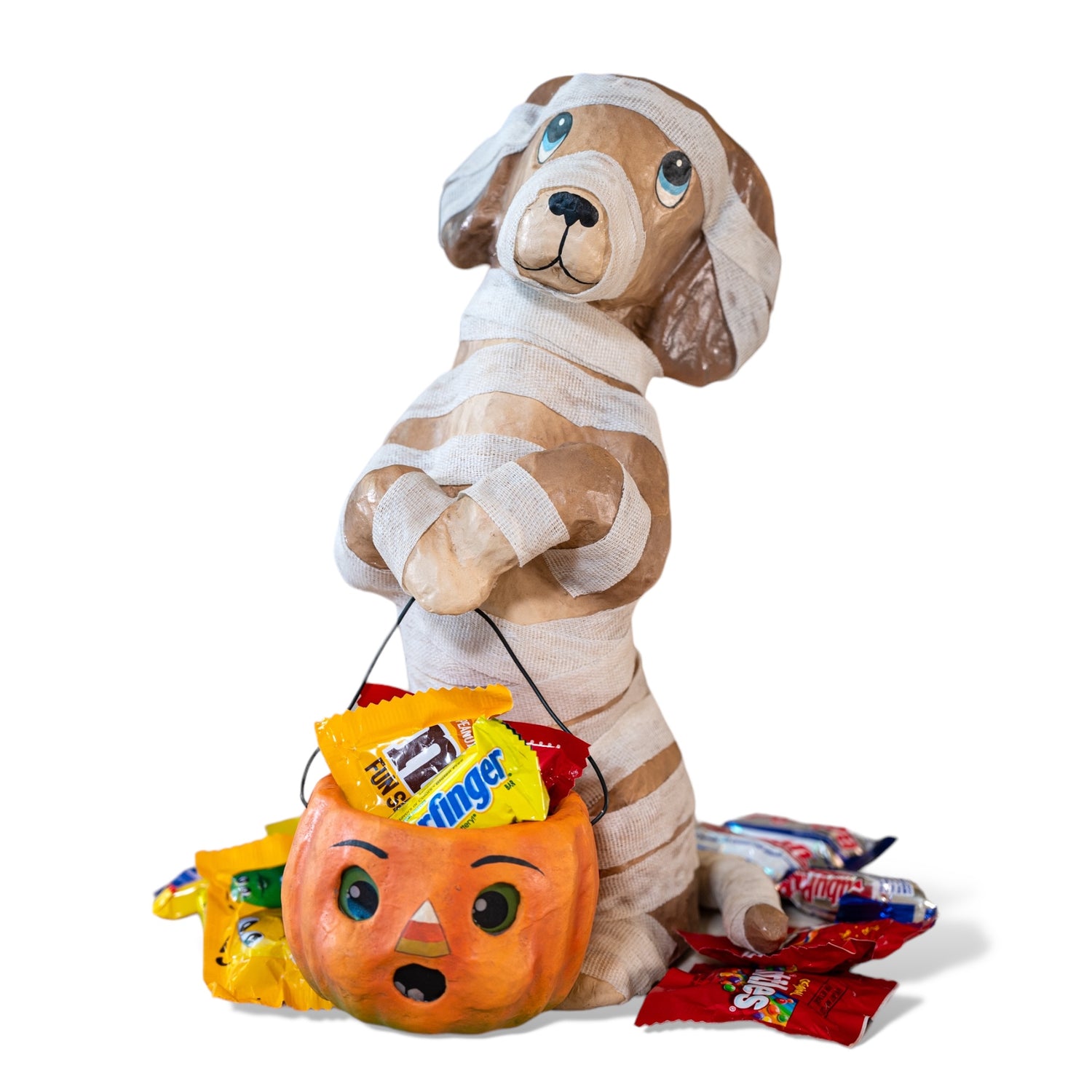 Mummy Puppy Paper Mache Candy Bucket is backordered and will ship as soon as it is back in stock.