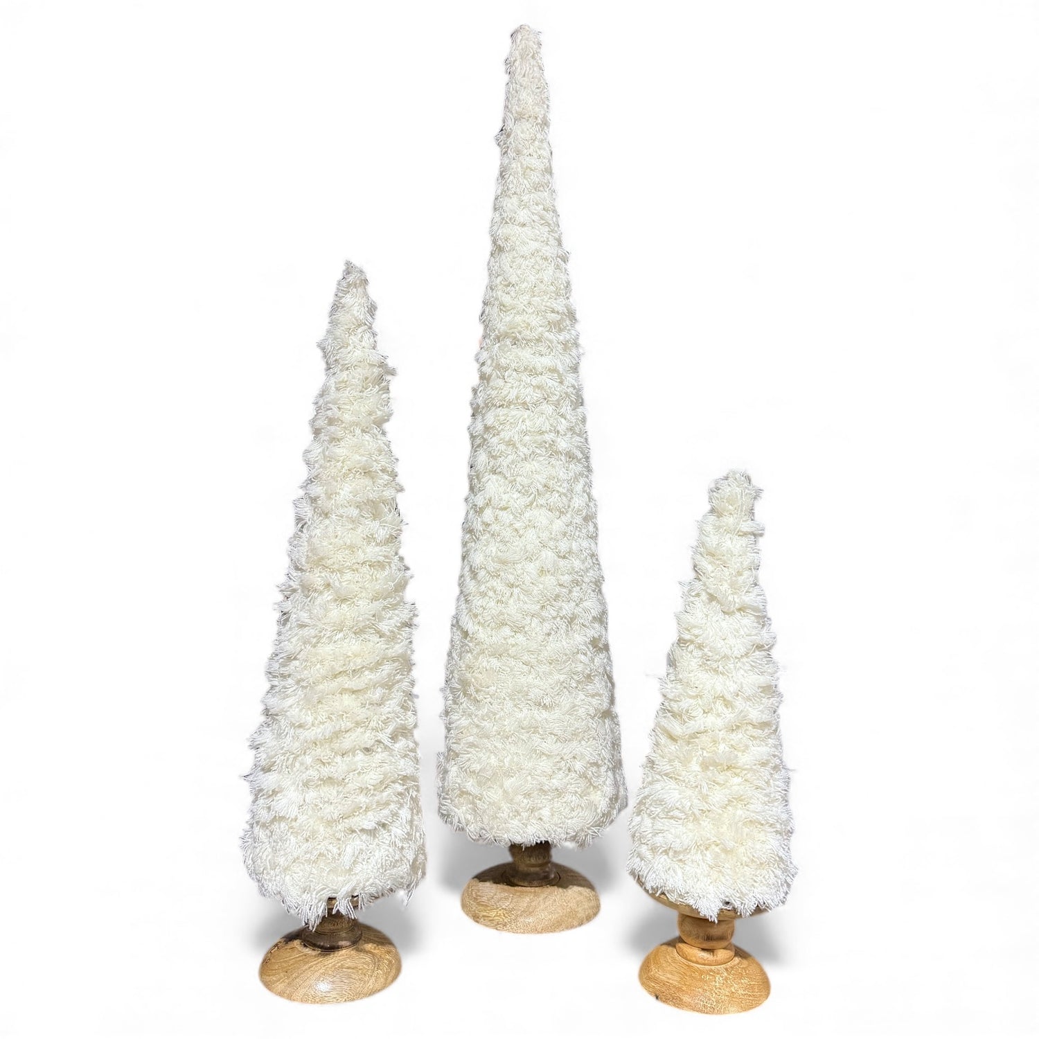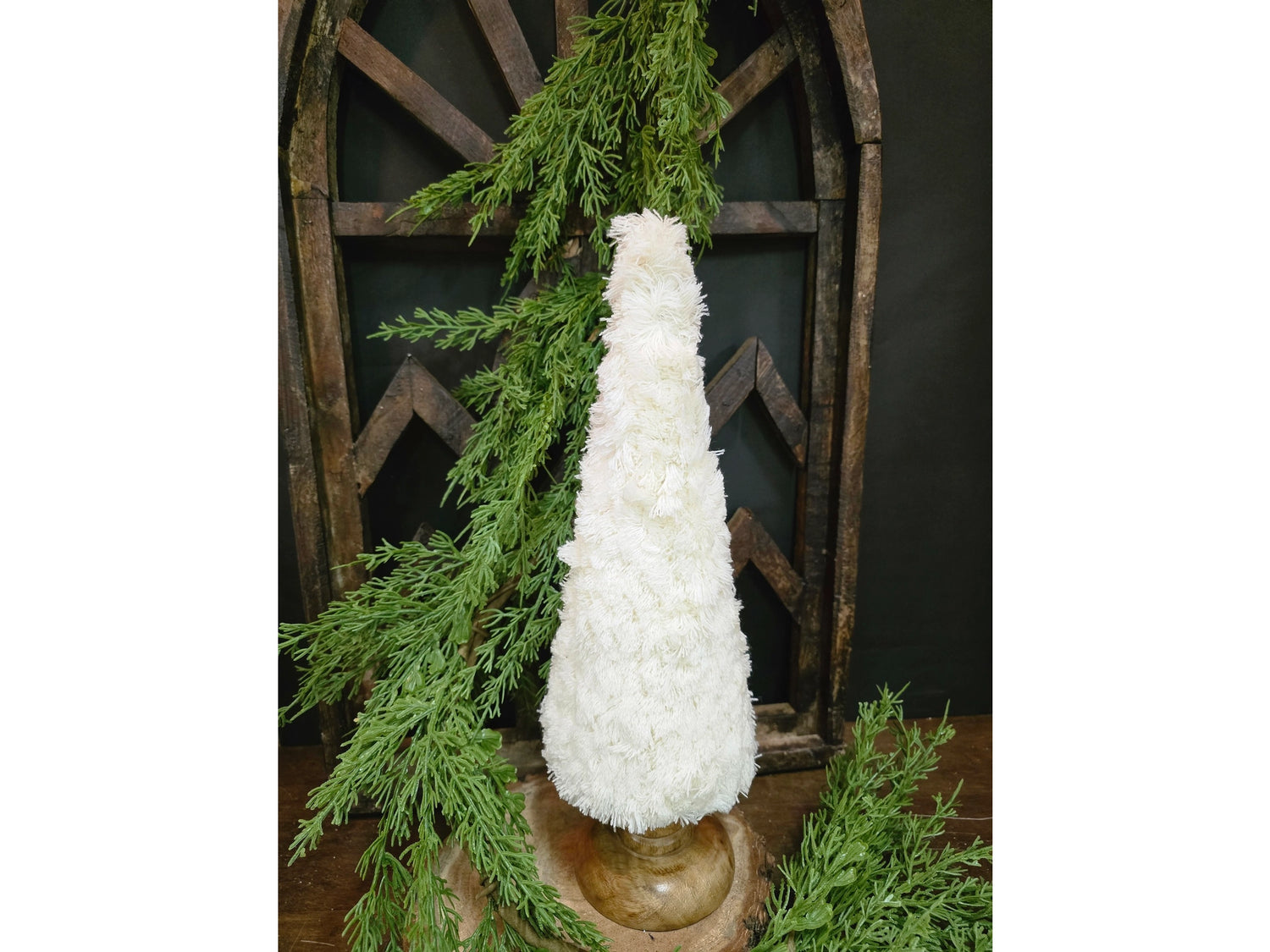 Soft texture meets winter elegance with these fuzzy white cone trees. Wrapped in plush, feathery fabric, each tree brings cozy dimension to mantels, sideboards, and holiday vignettes. Their neutral white color makes them versatile for both modern and traditional displays, adding a gentle snowy effect wherever they’re placed.