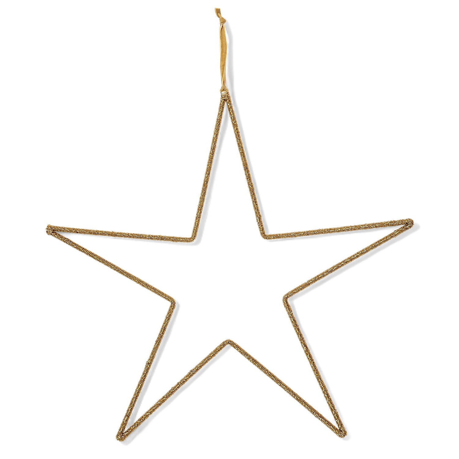 This elegant hanging star combines a delicate wire frame with shimmering glass beads, creating a radiant accent for your seasonal décor. Finished in gold and suspended from a soft cotton velvet ribbon, it adds a touch of festive sparkle to walls, doors, or windows.