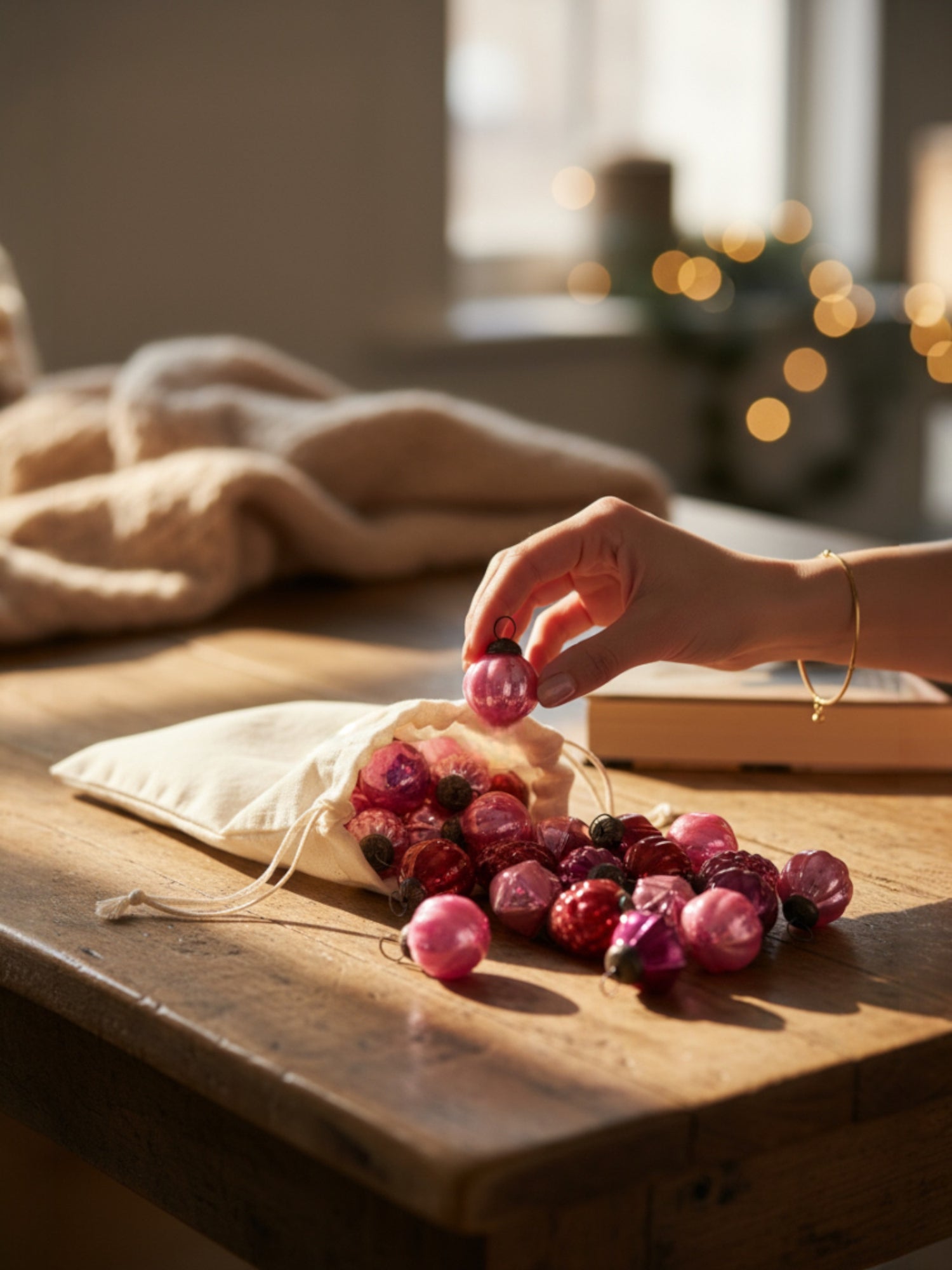 A beautiful mix of vintage-inspired mercury glass ornaments in rich red, pink, and fuchsia hues. Each piece is embossed with delicate detail and finished with an aged metal cap, evoking the look of heirloom holiday decor. Perfect for tree trimming, wreath embellishments, or bowl displays, these ornaments arrive in a reusable muslin storage bag for safekeeping.