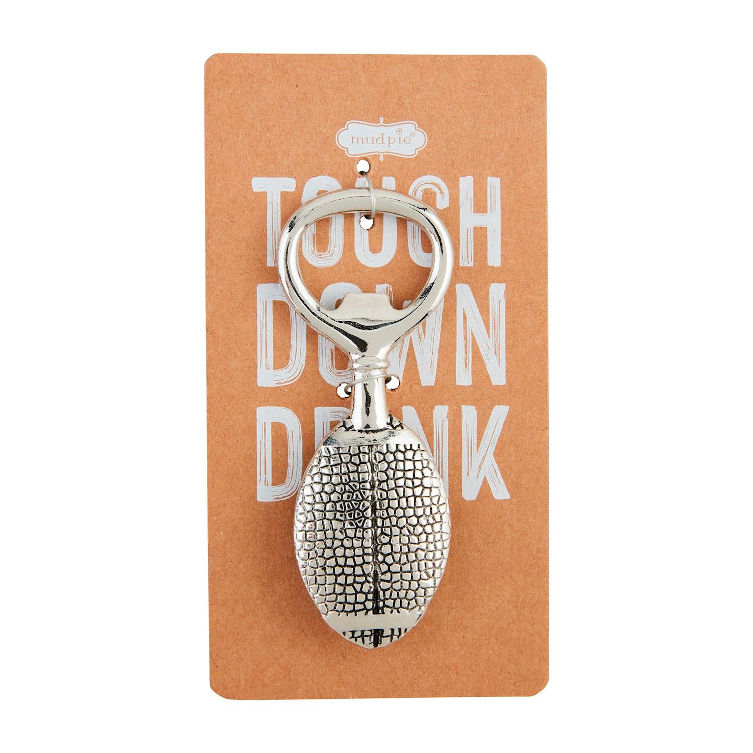 - Football Bottle Opener – Designed with a detailed football texture, this opener is perfect for game-day gatherings and football fans. Comes on a card that reads "TOUCHDOWN DRINK."