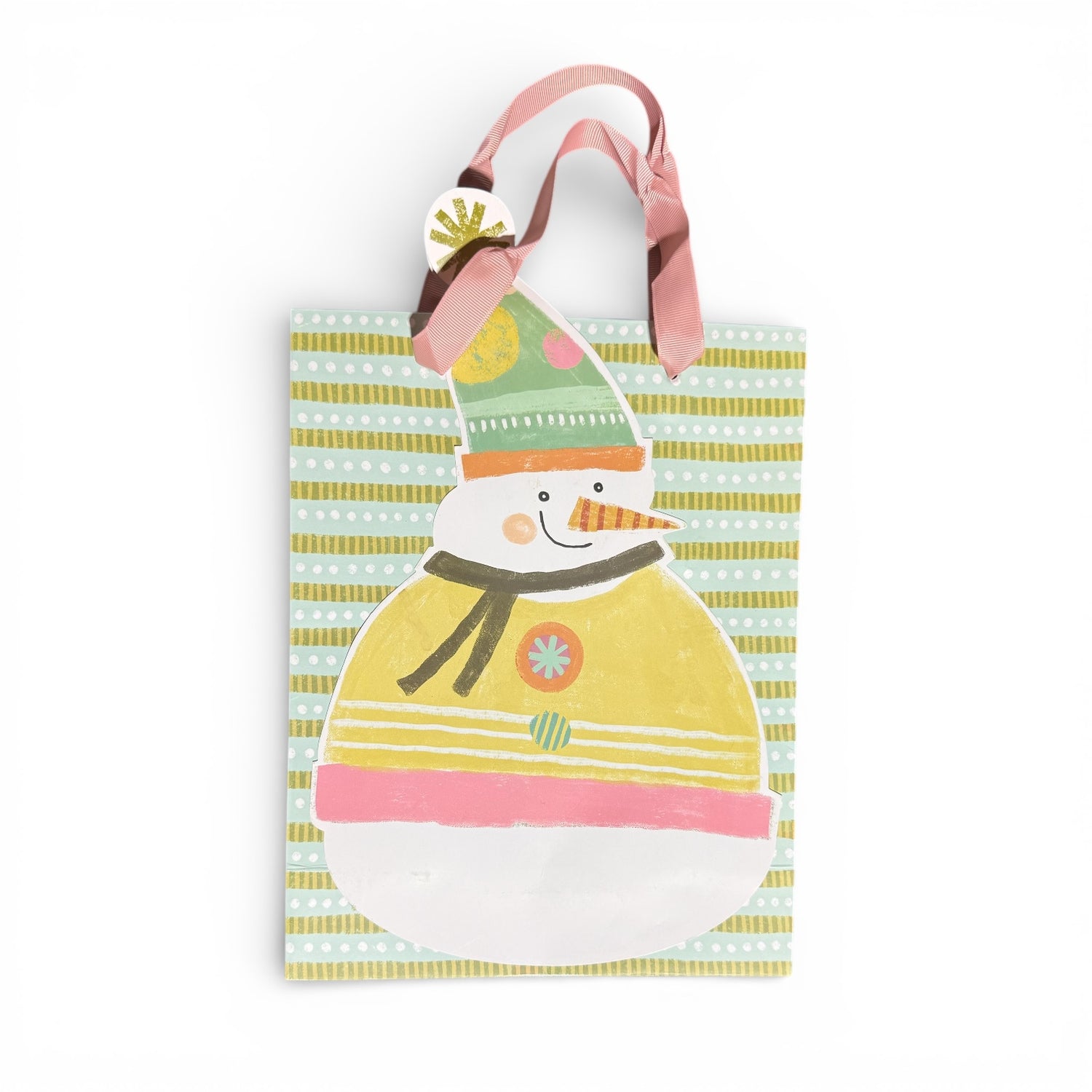 Festive and full of cheer, these recycled paper gift bags feature whimsical snowman designs in four unique styles. Each bag is finished with soft satin handles and charming winter patterns that bring a playful touch to your holiday gifting. Perfect for wrapping small presents, baked goods, or stocking stuffers with a joyful seasonal flair. Each sold individually.