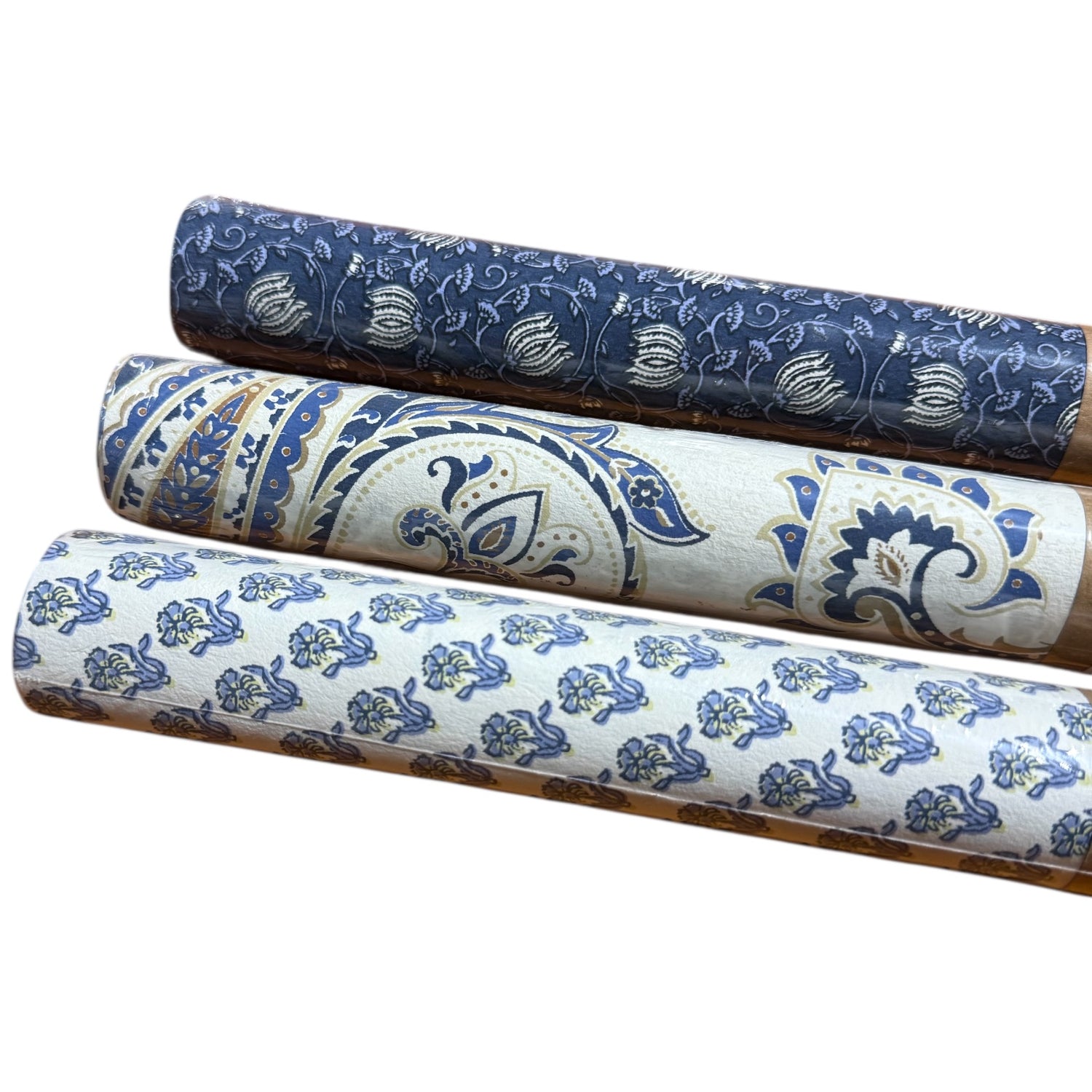Give your gifts a timeless, handcrafted touch with these beautiful block-printed wrapping paper sheets. Each roll includes three handmade sheets made from recycled paper, featuring intricate blue and neutral-toned patterns inspired by classic textile prints. Perfect for birthdays, weddings, or any special occasion, these eco-friendly papers add a refined and sustainable element to your wrapping collection.