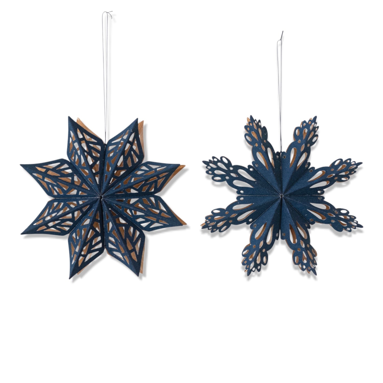 Navy & Gold Recycled Paper Snowflake Ornaments
