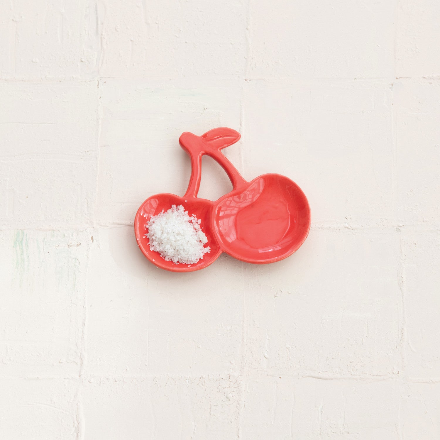 Bring playful style to your table with this cherry-shaped ceramic dish in a glossy red finish. Perfect for holding spices, condiments, or small treats, this piece adds both function and fun to your kitchen or dining space.