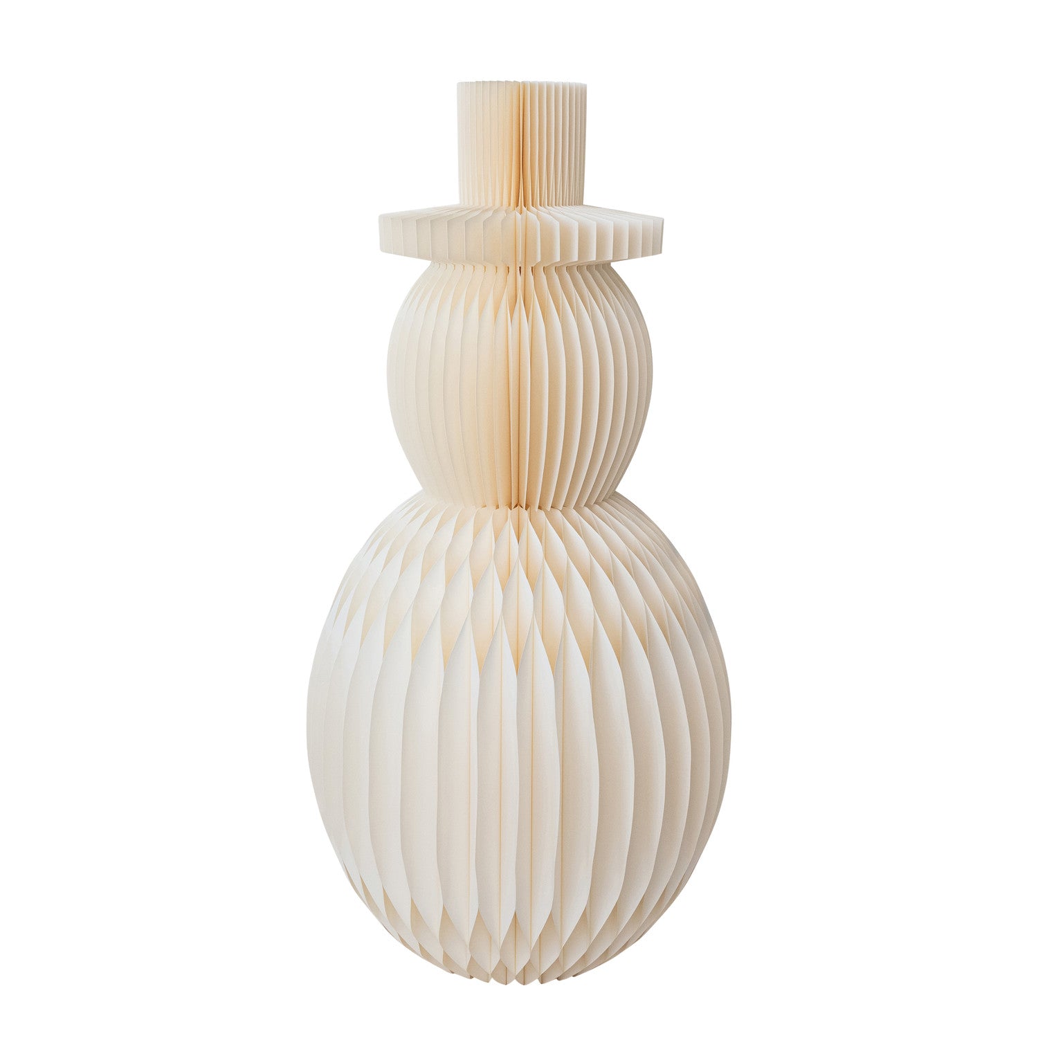 This handcrafted honeycomb snowman brings a sculptural winter accent to any holiday setting. Made from recycled paper with a warm white finish, its layered honeycomb folds create dimension and charm while maintaining a minimalist appeal. The collapsible design makes it easy to assemble, store, and reuse season after season. Standing five feet tall, it makes a delightful statement piece for entryways, storefronts, or event spaces.