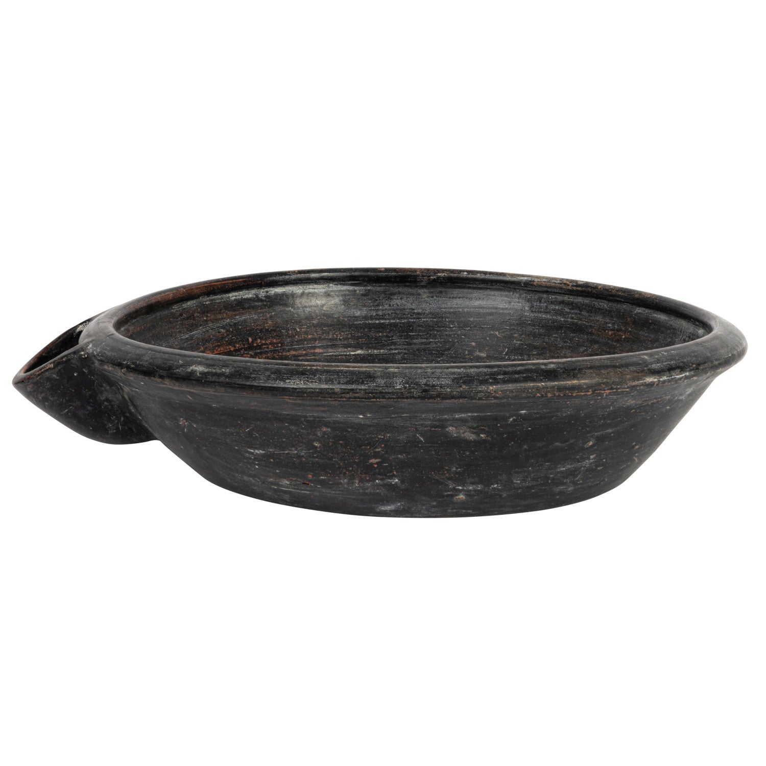 Rooted in traditional form, this vintage inspired dahi bowl is crafted from clay and finished in a matte black tone that highlights its hand-shaped character. The wide, shallow silhouette and subtle side handle detail give it an authentic, collected feel that works beautifully in layered home styling.