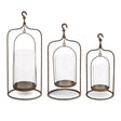 Rustic Metal Hanging Candleholders w/Swinging Glass Hurricane