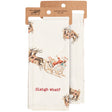 A cotton-linen kitchen towel displaying all-over vintage designs of Santa in his sleigh with a coordinating Christmas inspired pun that reads "Sleigh What?" Sentiment is embroidered for added interest. Our Sleigh What? kitchen towel is conveniently machine-washable for easy cleaning.