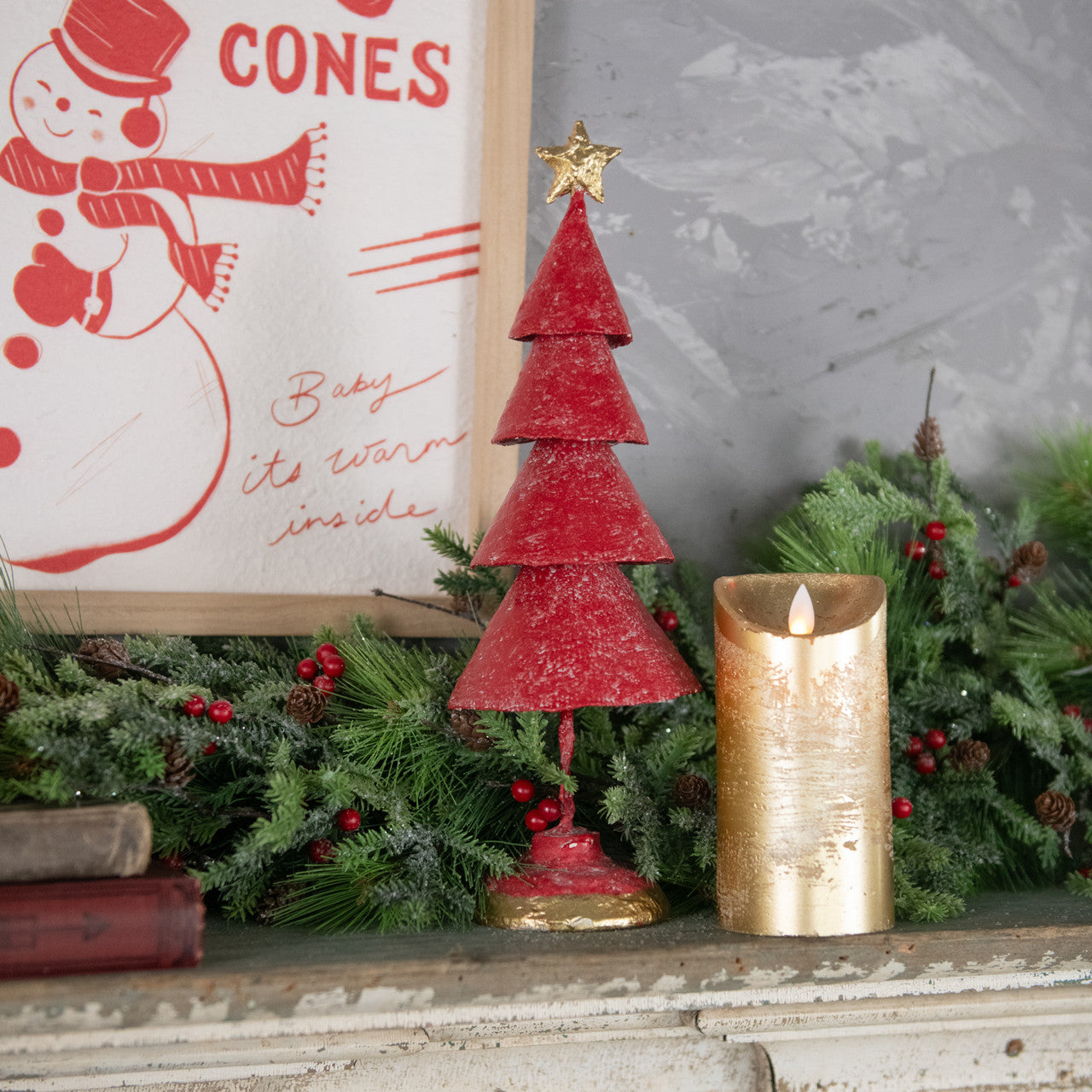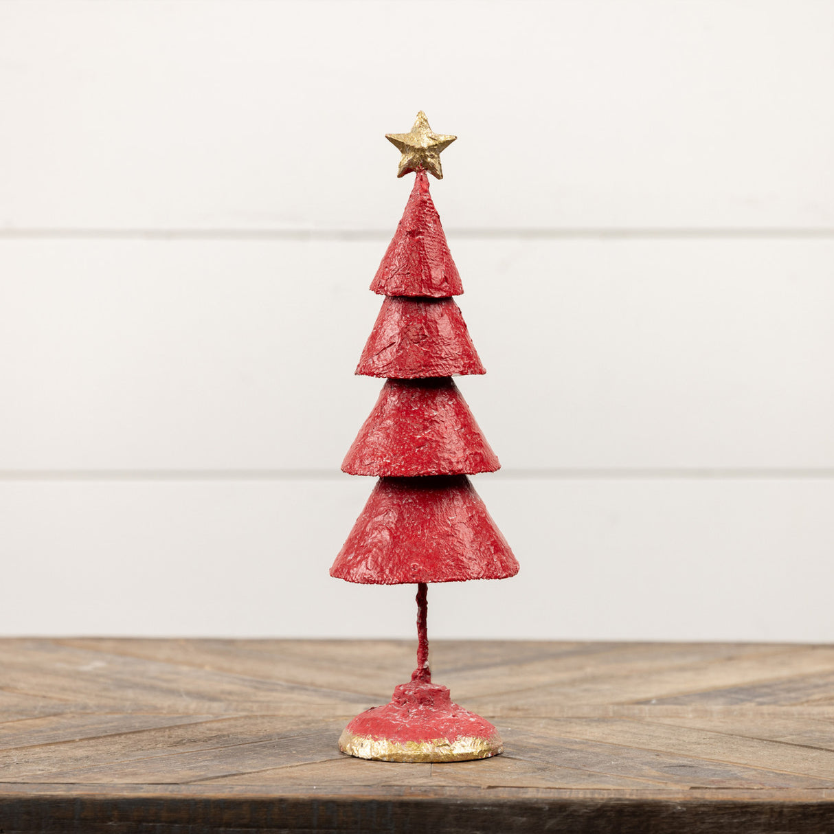 Decorate for Christmas in style with our Red Metal & Paper Trees! Available in two sizes, these beautiful trees feature a unique combination of metal and paper mache with gold foil accents. Add a touch of elegance to your holiday decor with these festive trees. They can be used to create a bright festive scene, paired with a flameless candle, or placed on a coffee table with a stack of vintage Christmas books.