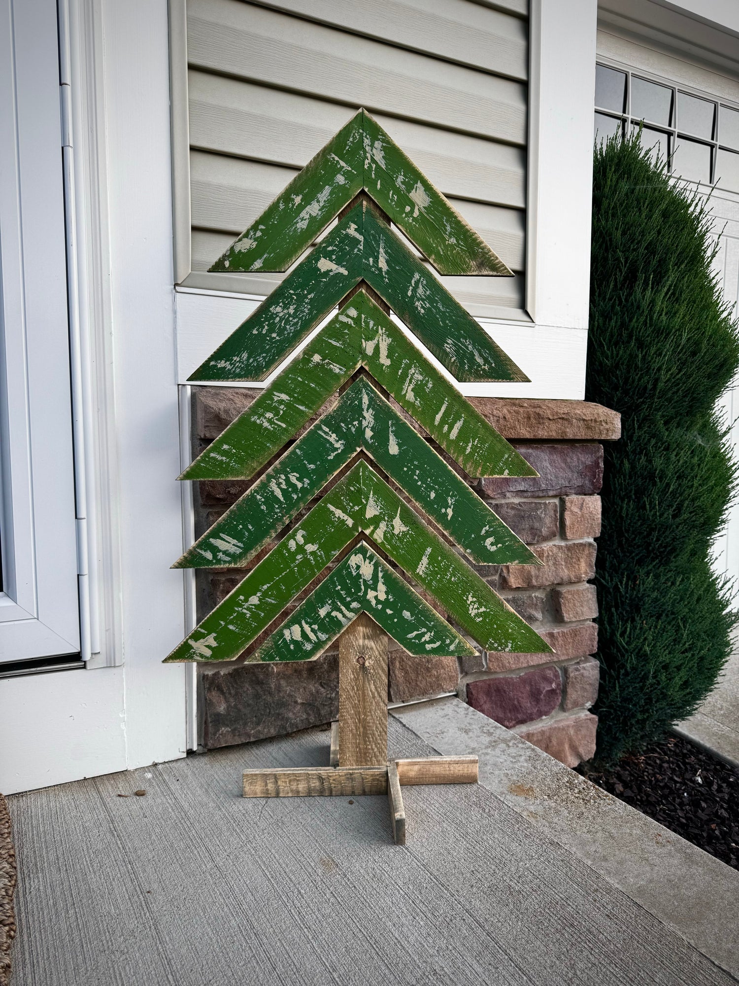 Our Recycled Wood Standing Trees will certainly add some rustic farm charm and dimension to your holiday decorating. This standing Christmas tree comes in three coordinating styles, each constructed from recycled wood, giving them tons of character. You can arrange these wooden trees on your covered front porch or place them in the corner of a large entryway inside your home.