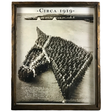 This horse head formation photo is a newly printed copy of a 1919 formation photo, taken at Camp Cody in Deming, New Mexico. The photographer coordinated 650 military personnel, having them stand in the shape of a horse head. The saddle horse ridden by Major Frank G. Brewer, “the Devil”, was the inspiration for the horse head. The photo was taken on a tall tower, with the amount of people adjusted toward the back of the formation for perspective. The participant in the photo were members of Auxiliary Remount Depot 326. This interesting photo is printed in sepia tone, and framed under glass in reclaimed wood.
