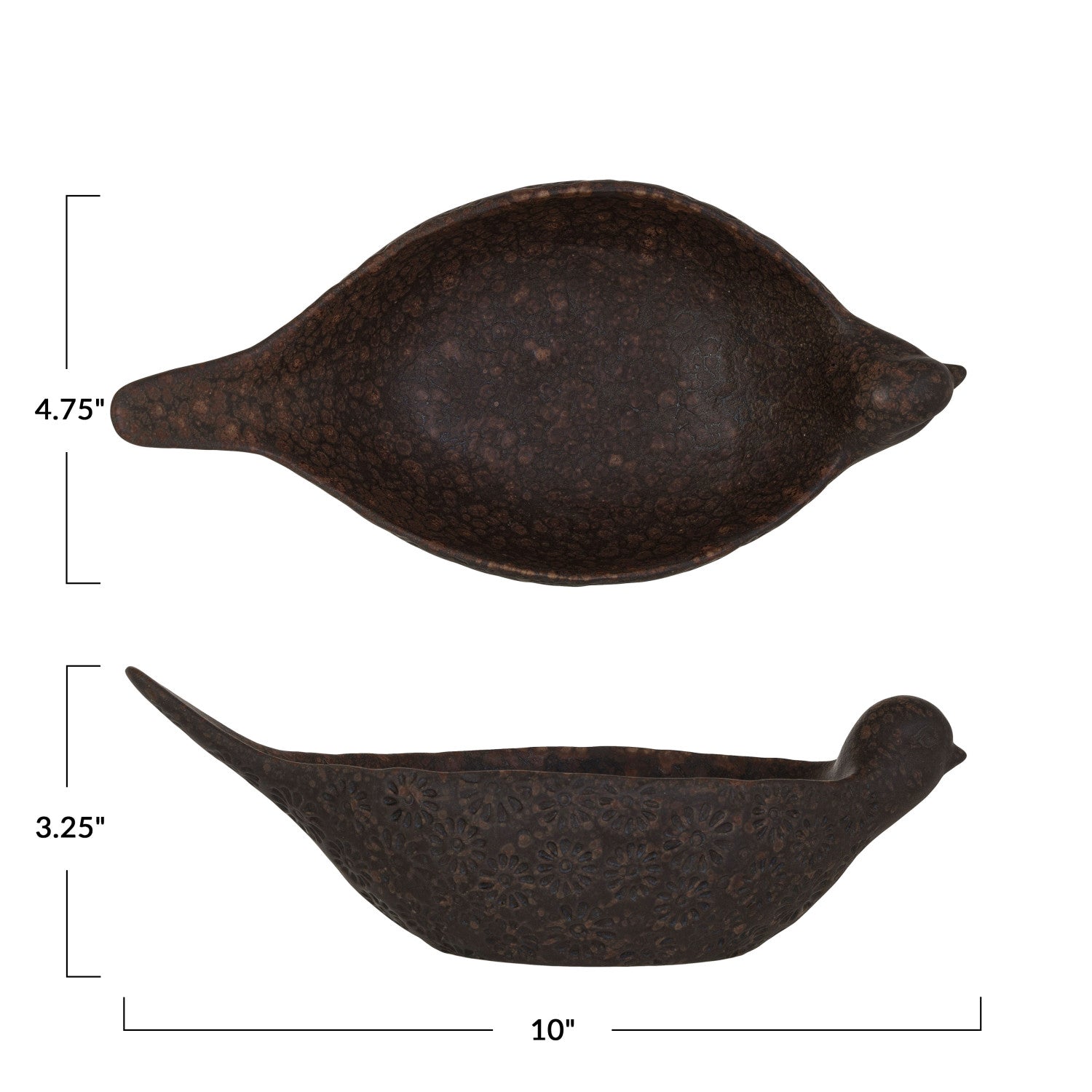 Sculptural and earthy, this debossed stoneware bowl is shaped like a perched bird, blending function with artful detail. The elongated silhouette and gently raised head create a graceful profile, while the allover debossed floral pattern adds subtle texture and depth.